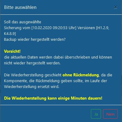 In der Maske werden vorhandene Datensicherungen angezeigt. Per Klick auf den Button