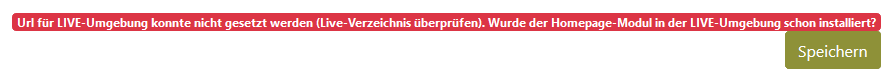 Das ist zunächst nicht von Bedeutung. Installieren sie aber die LIVE-Umgebung über den Menüpunkt Veröffentlichen. Beim ersten Veröffentlichen merkt der Homepage-Modul, dass die LIVE-Umgebung noch nicht installiert ist und bietet die Installation an.