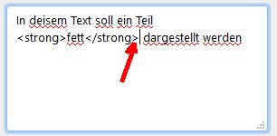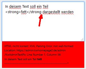 Viele Texte für ihre Homepage können sie mit HTML-Elementen zusätzlich ganz individuell aufhübschen. Hierzu sind allerdings HTML-Kenntnisse erforderlich. Bei der Eingabe überprüft der Homepage-Modul die Korrektheit der HTML-Syntax.