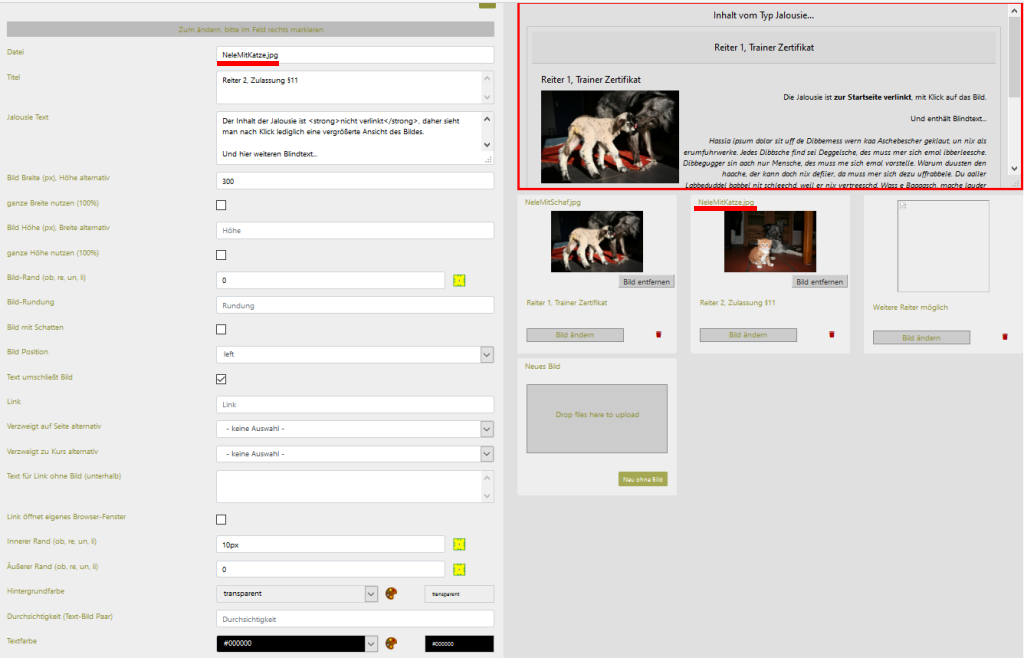 Jedes Jalousie Einzel-Element enthält einen Text und optional ein Bild.