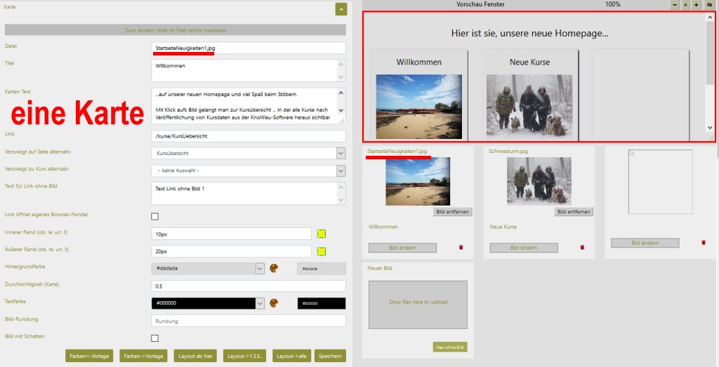 - Link, verzweigt auf Seite, verzweigt zu Kurs: Von einer Karte kann optional zu einer Seite, einem Kurs oder einer externen Website verzweigt werden,