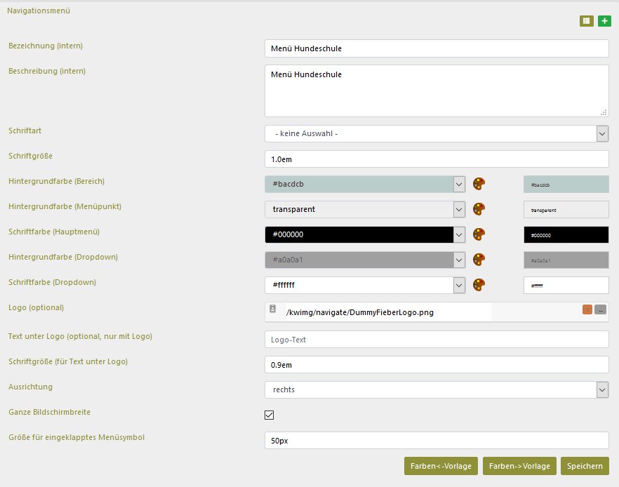 In der Bearbeitungsmaske für das Navigationsmenü können Eigenschaften und Logo bestimmt werden.