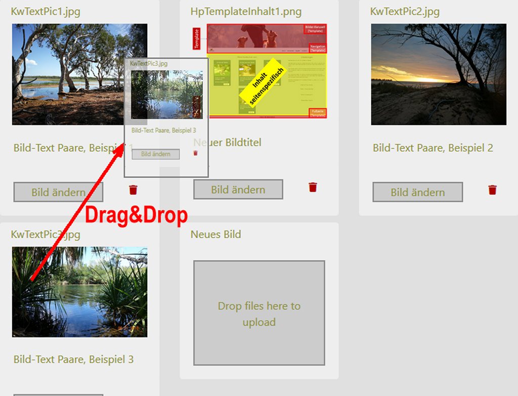 Die Reihenfolge von Elementen kann per Drag & Drop geändert werden.