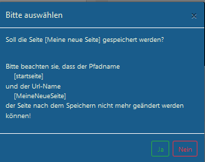 Nach Klick auf den Speichern Button für eine neue Seite erscheint zunächst die Bestätigungsmeldung: