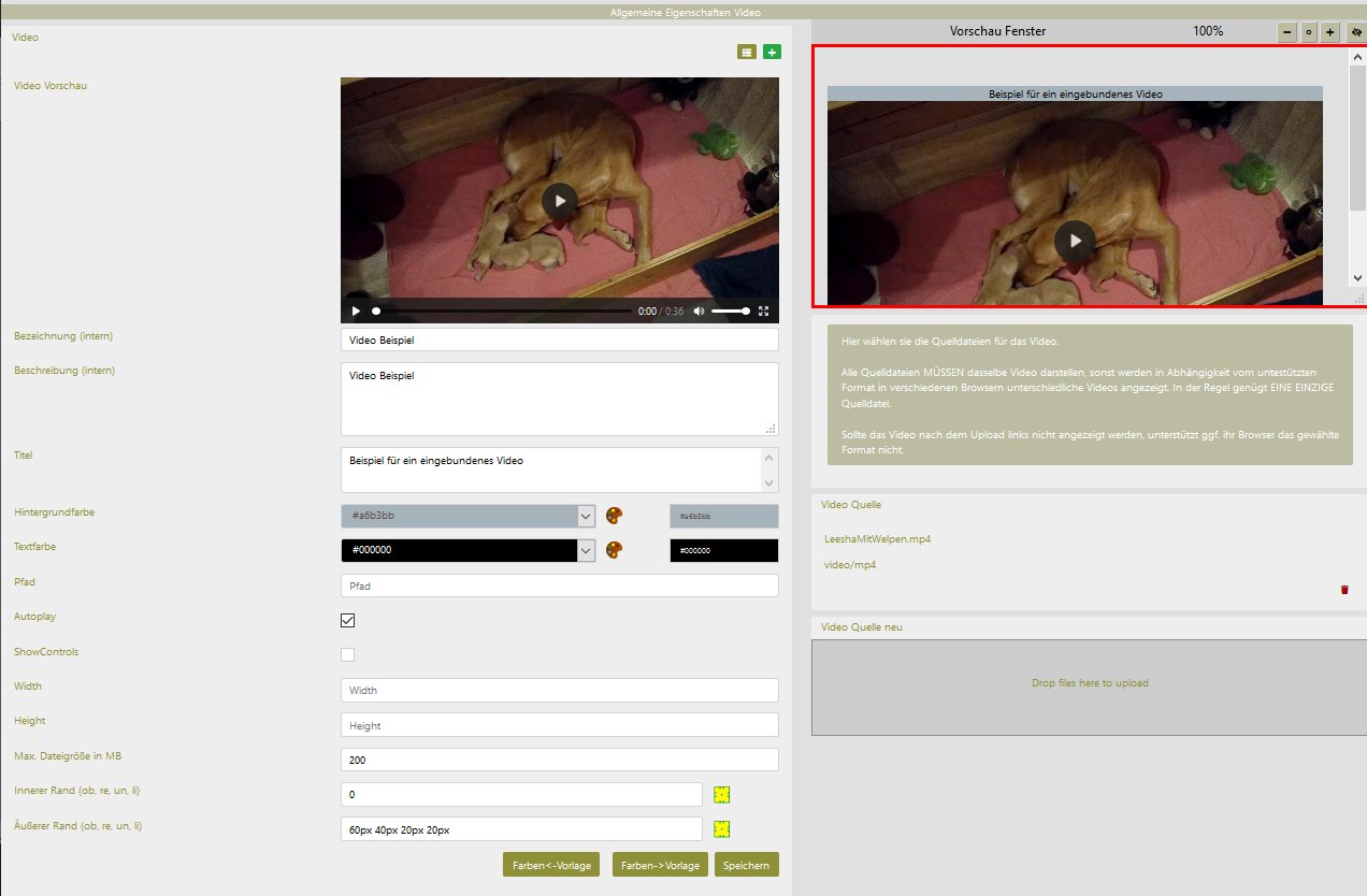 - Autoplay: Video beginnt ohne manuelle Aktion unmittelbar beim Aufruf der Seite, falls der Haken gesetzt ist.